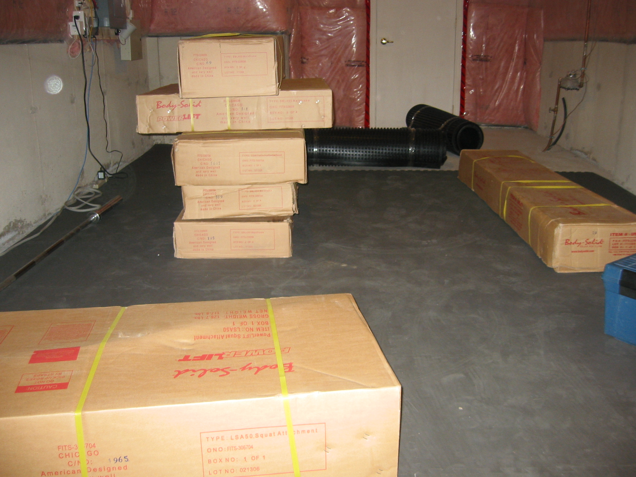 From a budgeting perspective, the money I spent on the gym at this stage was money my wife and I had allocated for a home gym for me, and I had a pretty complete gym. From that time on, any money I wanted to spend had to come from “non-family” funds. I do a lot of math tutoring so there’s a source of income that is “extra”. When I tutor though, my wife and kids have to stay quiet, because I tutor in our home in the dining room. Our house is not very big. Any noise in the house is heard in the dining room, no matter where the noise originates. I have to tutor in the dining room because it is in plain sight of the front door, and it’s important to me that parents of the students I tutor know that at any time they could walk up to the door and see us. Teachers will understand that sadly, these are things we have to consider whenever we know we are going to be alone with a kid who is not ours. A long time ago my wife and I sat down to discuss tutoring funds, and we decided that the whole family contributes in their own way to my being able to earn that extra money. So we decided that what made the most sense to us is that whatever I earn, 50% goes right into family money. Of the remaining 50%, half goes to my own discretionary pile and the other half goes into my wife’s discretionary pile. This is money that either of us can spend on whatever we want without having to consult or feel guilty that a frivolous purchase was made at the expense of something the family may have needed or wanted. I use it for things like casino trips, electronic toys that only I care about, and gifts for my wife (she uses hers on gifts for me among other things). This stash of money was to become my source for the rest of the improvements to my gym.