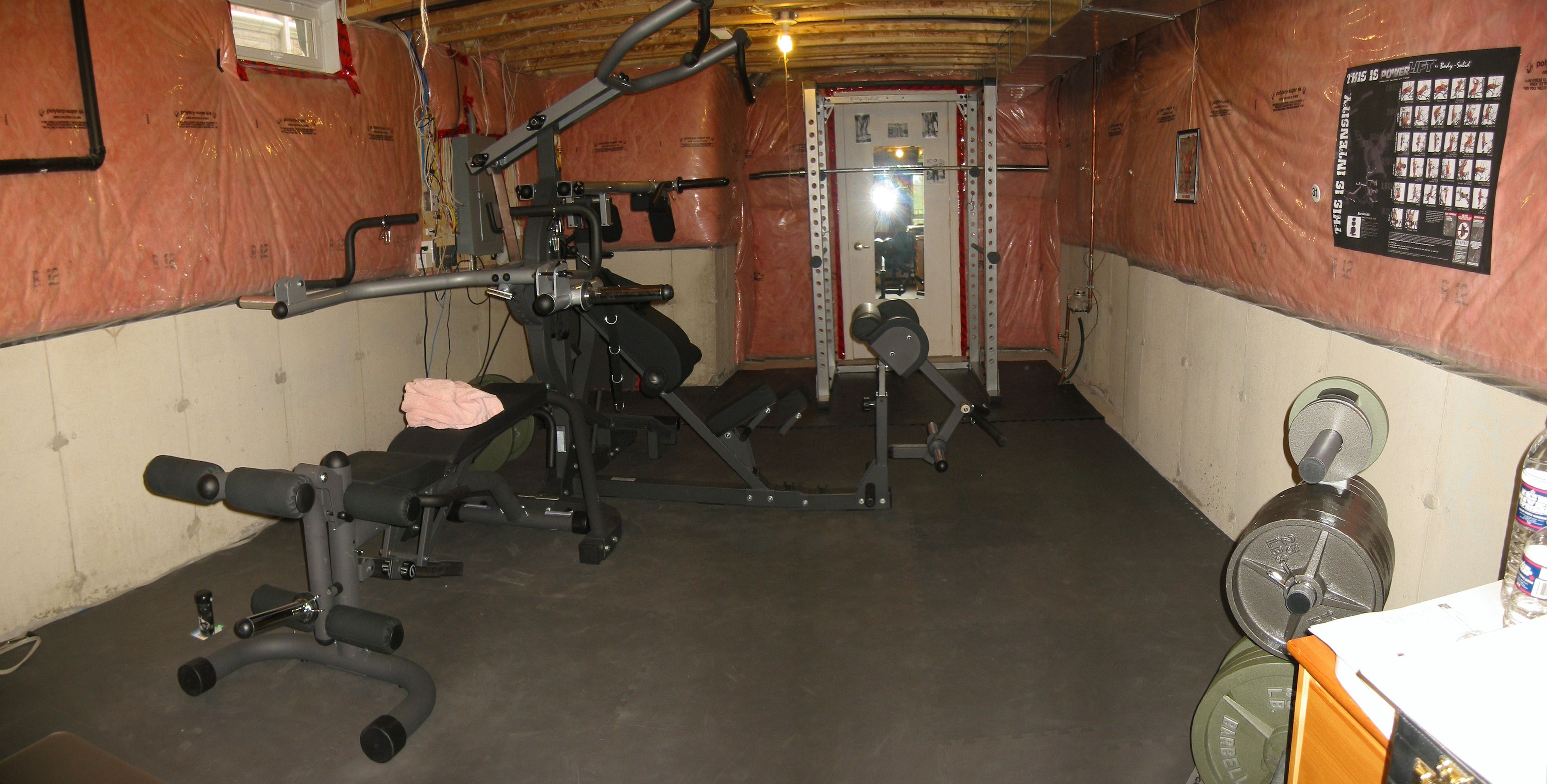 First things first, I needed a space. We had recently moved into a new home (brand new that we chose from architectural plans), and a big criterion was that there be a good space in the basement for a gym. Our basement has just that. When you go down the stairs and turn right there is a big open area with a walkout to the backyard which is great for a family/games room, but if you turn left there is a smaller perfectly rectangular area that my wife and I knew from the get-go would eventually be the home gym. Check “space requirement” off the list.
